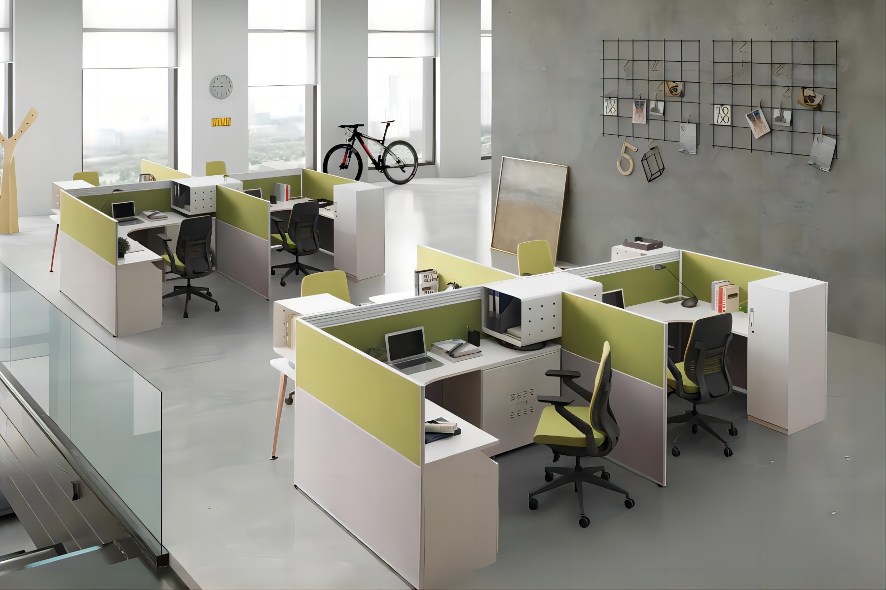 布置辦公室時,將高大的辦公家具與低矮辦公家具錯落有致的規(guī)律擺放會更加美觀,將辦公家具按工作屬性分區(qū)擺放,辦公空間會顯得更加整潔有序,保證足夠的活動空間,再適當借助一些綠植、小擺設來平衡空間,可以營造出舒適清爽的辦公氛圍。
