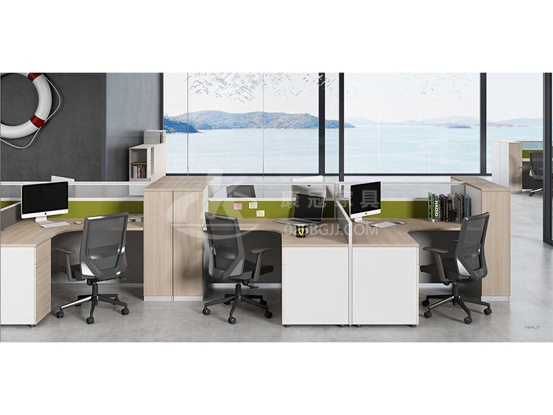 屏風(fēng)辦公桌采用十字組合搭配L型臺面,副臺采用固定柜滿足個人收納需求,產(chǎn)品組合可應(yīng)用于四人工作小組的辦公空間;