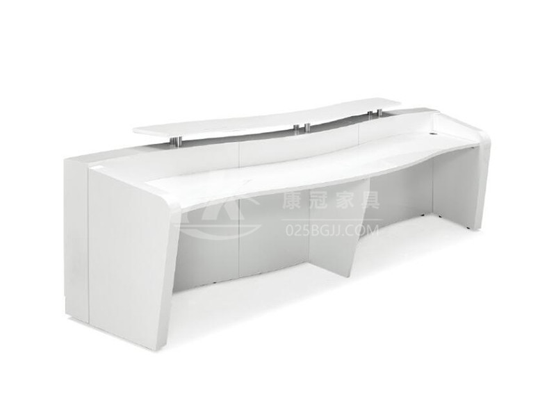 除了接待服務(wù)外,還擔(dān)負(fù)著很多附屬功能,如企業(yè)形象、服務(wù)態(tài)度都將作為第一反應(yīng)記錄在員工與客戶的記憶中。作為企業(yè)的“玄關(guān)”,在形象展示上有著無(wú)可厚非的重要性??裳由鞛椤爸甘尽⒁龑?dǎo)”之意;在為人與人之間的交流溝通架起共性的橋梁同時(shí),其真正目的是指示、引導(dǎo)人們?cè)谝?guī)劃空間內(nèi)的進(jìn)一步交流與溝通。同時(shí)在企業(yè)形象與產(chǎn)品展示功能上亦扮演著重要角色。板式前臺(tái),四邊倒角幾何,采用矩形管焊接結(jié)構(gòu),L型鋼件固定,內(nèi)置隱藏LED燈組,人性化設(shè)計(jì),外觀大氣簡(jiǎn)潔,方便接待人員與客戶之間的交流溝通。